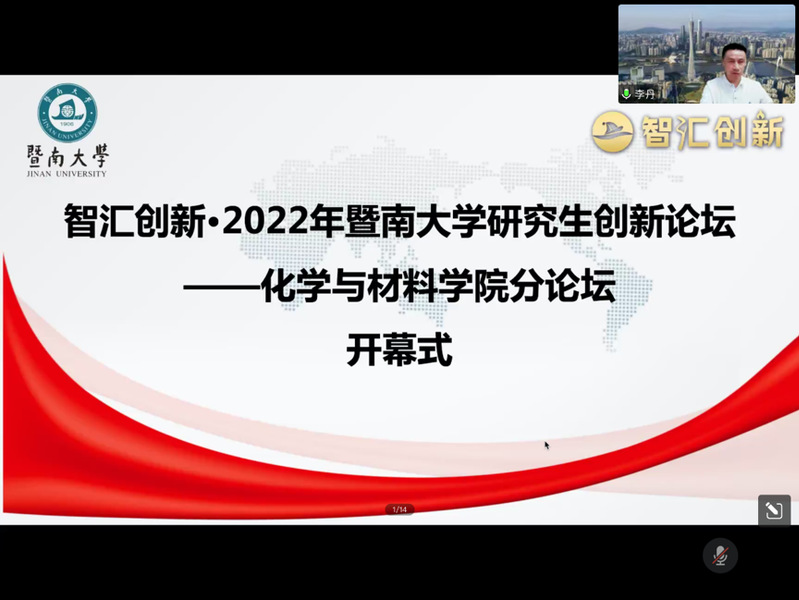 李丹院长在开幕式上强调本届论坛汇集了来自学院化学和材料学科相关领域的优秀研究生的创新科研成果。他指出,本次论坛旨在促进研究生学术研究及创新实践的交流互动,同学们不但要做好自己的课题,还要加强对其他学科的学习,增强学科交叉意识。虽然由于疫情原因,论坛在线上举办,但希望本次论坛能够成为学院研究生交流合作的一个平台。他鼓励同学们把握交流的机会,多参与互动讨论,展示出化材学子的学术风采和高水平的创新成果,学院将努力创造更多交流平台能够让同学们有更多的学术交流、思想碰撞、拓展视野的机会。