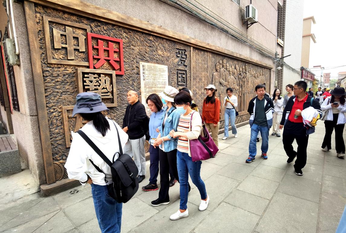 教职工一行首先来到白沙村,穿过宁静的村落小巷,走进彭泽民故居。映入眼帘的是彭泽民先生的人物雕像和生平介绍。彭泽民生于1877年,是孙中山先生的拥护者,著名的爱国主义华侨的领袖、中国共产党的挚友、中国农工民主党创始人和领导人之一。新中国成立后,他历任全国人大常委会委员、全国政协常委、中央政法委员会副主任、农工党监察委员会主席、农工党中央副主席、全国侨联副主席等职。一幅幅历史图片、一件件遗物,将大家带回到那段艰苦奋斗的岁月中,深刻感受先烈们舍身忘我、甘于奉献的革命精神,感叹当下幸福生活的来之不易。