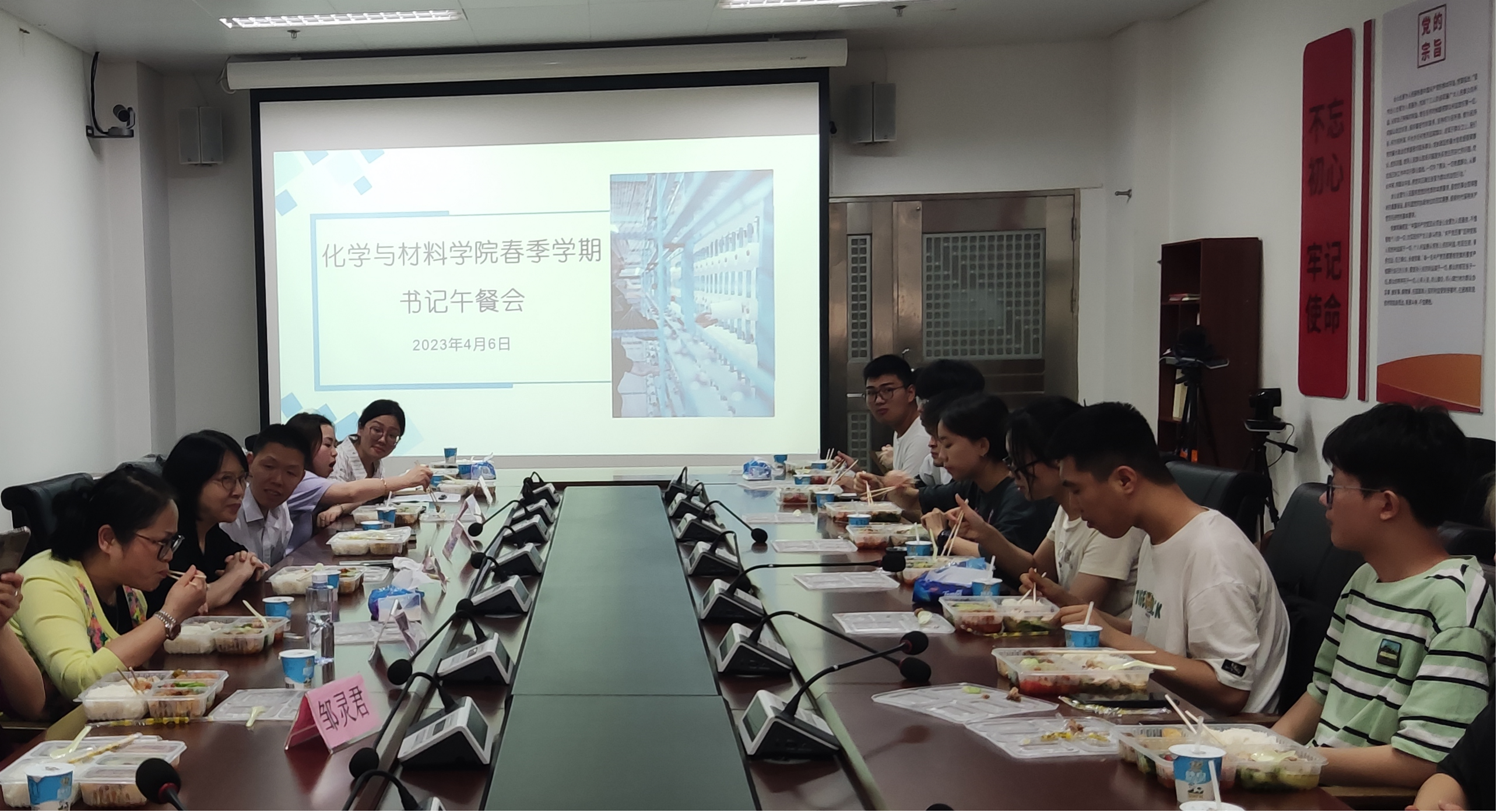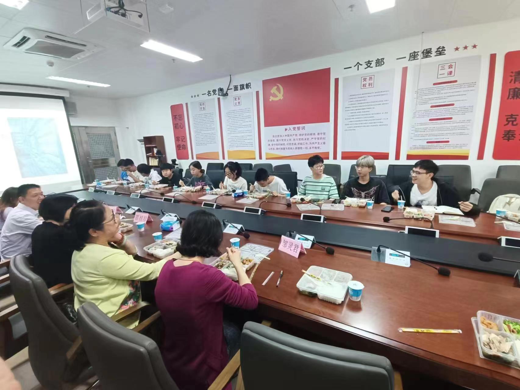 在轻松活跃的气氛下,各年级学生代表一边享用午餐,一边围绕专业学习、学术科研、考研就业、校园文体活动与社会实践、班级建设、校园设施管理和建设等话题,与老师们亲切交流。