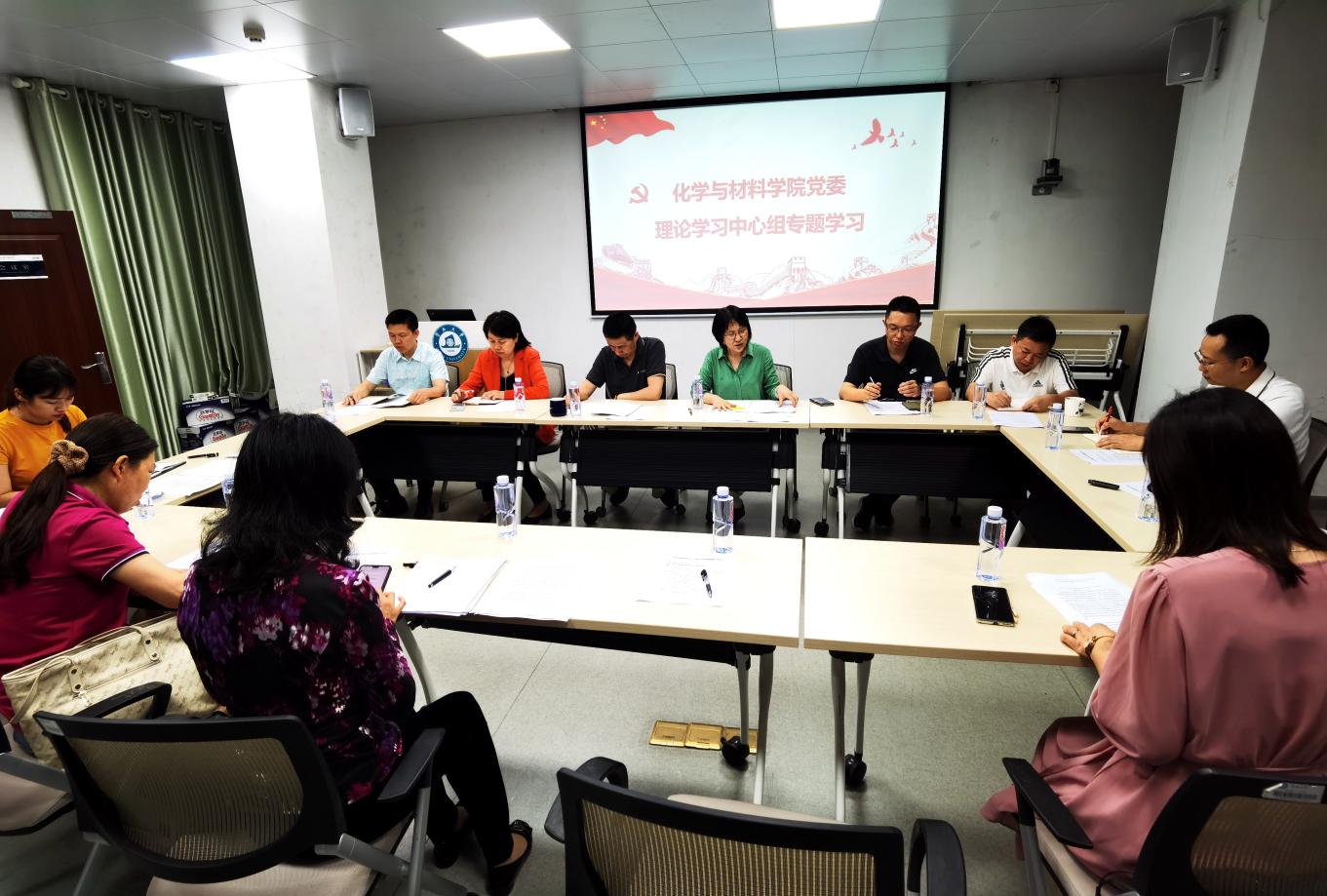 4月18日下午,vwin德赢ac米兰官网党委理论学习中心组在石牌校区超分子配位化学研究所会议室召开专题会议,推进全面从严治党,深入贯彻落实党的二十大重大决策部署,推进学院宣传平台自查工作。学院党委书记邵桂珍,党委副书记、院长李丹,党委副书记兼学院办公室主任陈文举,纪委委员、副院长陈填烽,党委委员、副院长李红,副院长周小平、材料科学与工程系党总支书记容建华、化学系党总支书记查海燕及各系、所、中心、办主任等参加学习。会议由邵桂珍主持。