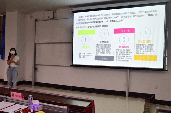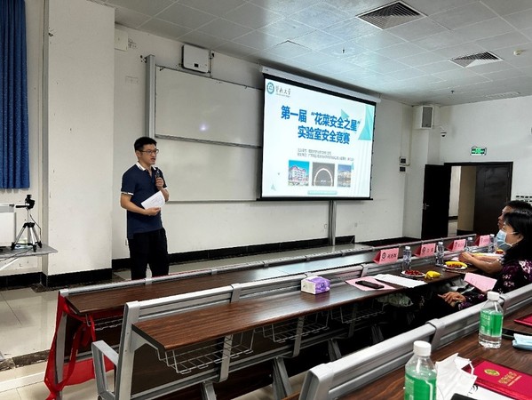 陈文举副书记表示化学学科每一个阶段的学习都离不开科研实验,而实验安全是一切的保证。本次举办实验室安全竞赛是希望同学们以赛促学、以赛促用,让所有师生能够深刻理解实验室安全的重要性,增强个人的安全防护意识,共同为学院发展提高安全保障。