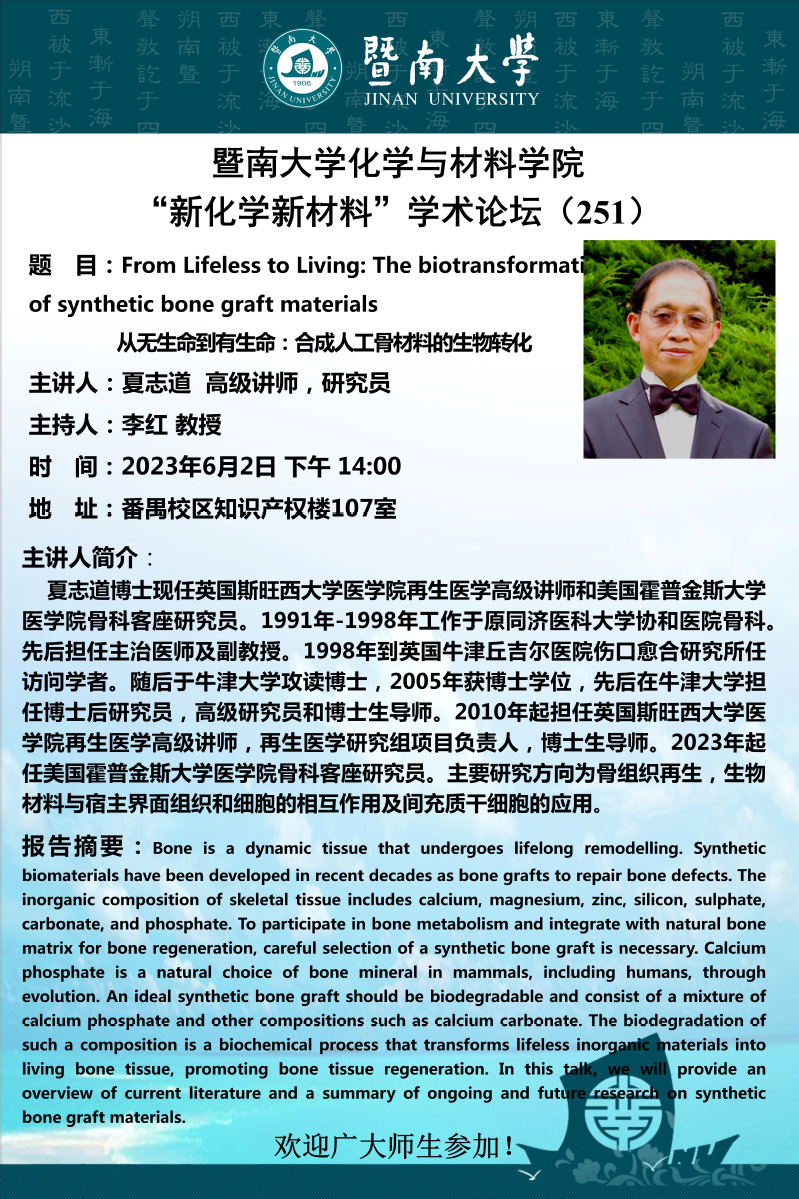题目:从无生命到有生命:合成人工骨材料的生物转化