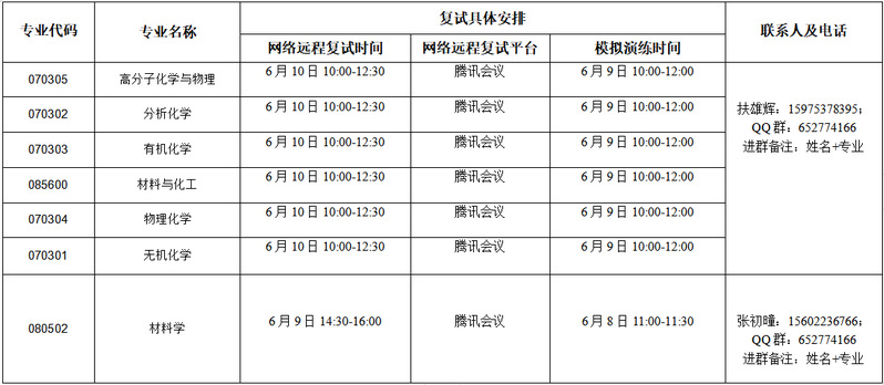 一、复试工作采用网络远程复试方式进行,复试时间6月9日-10日。
