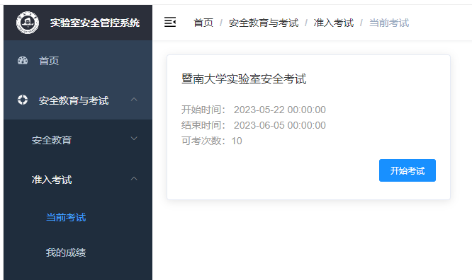 根据教育部印发的《高等学校实验室安全规范》第七条及学校实验室安全系统新的准入要求,实验人员需通过“学校—学院—实验室”三级安全考试或考核后才可获取对应实验室的准入证书。各级别考试/考核方式如下: