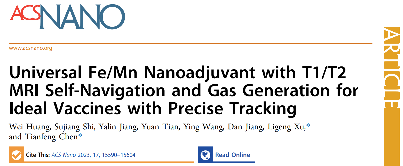 近日,vwin德赢ac米兰官网陈填烽教授/许利耕教授团队在新型疫苗佐剂开发方面取得重要进展,相关成果以“Universal Fe/Mn Nanoadjuvant with T1/T2 MRI Self-Navigation and Gas Generation for Ideal Vaccines with Precise Tracking”为题,发表于国际权威期刊ACS NANO(影响因子17.1),vwin德赢ac米兰官网为唯一通讯单位。这是该团队继开发纳米硒佐剂用于新冠病毒纳米疫苗(STTT, 2023)、灭活病毒纳米疫苗(Small Methods, 2023)等一系列研究工作后取得的又一重要成果。