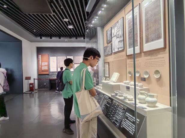 师生们考察的最后一站是广州海事博物馆。广州海事博物馆是目前粤港澳大湾区广东省境内唯一一座“海事”专题博物馆,馆藏文物以大量出水精美瓷器为最大特色。参观过程使师生们得以窥见古时羊城繁荣海商历史的冰山一角。