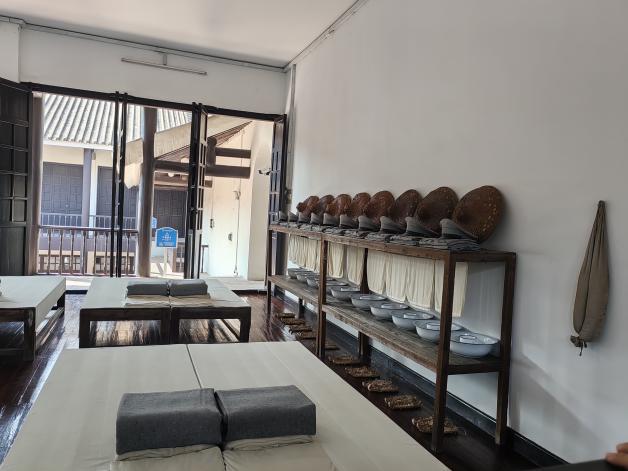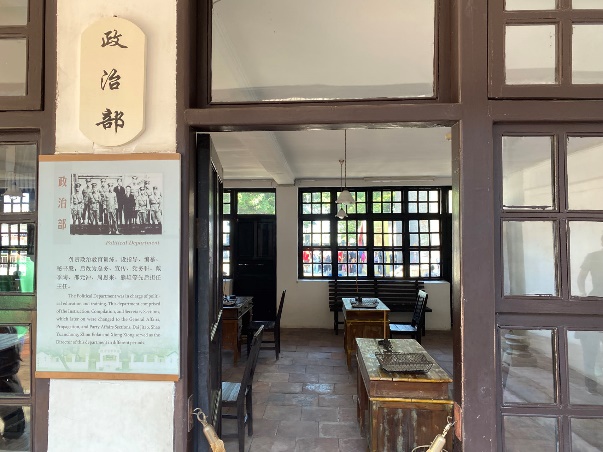 14日上午,师生一行首先来到黄埔军校旧址纪念馆。黄埔军校自建立以来,以孙中山的“创造革命军队,来挽救中国的危亡”为宗旨,“亲爱精诚”为校训,为中国革命军事政治人才的培养工作,作出了重大贡献。在讲解员的介绍下,师生一行先后参观了孙总理纪念碑、东征阵亡烈士陵园以及校本部的复原陈列室。当走过政治部办公室、校长室、校本部办公厅、总理室、校长会客厅、书报阅览室、教授部、入伍生统队部、黄埔军校自习室、黄埔军校学生宿舍等区域,师生们体会到昔日军校教官与学生共同学习、训练、生活的情景历历在目。通过实地参观,师生们深刻学习了新民主主义革命时期中国人民的英雄事迹和体会了反帝反封建抗争精神,这进一步激发了师生们的爱国主义情感。