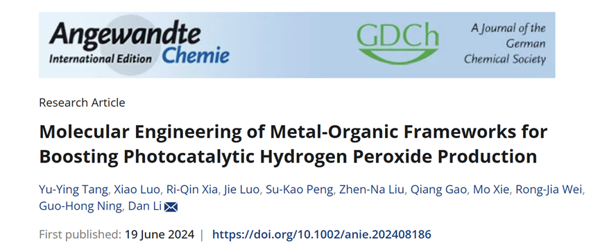 近日,vwin德赢ac米兰官网宁国宏/李丹教授团队以vwin德赢ac米兰官网为唯一通讯单位于2024年06月19日,在Angewandte Chemie(IF=16.1)上发表了题为 “Molecular Engineering of Metal-Organic Frameworks for Boosting Photocatalytic Hydrogen Peroxide Production” 的重要研究成果(图1)。