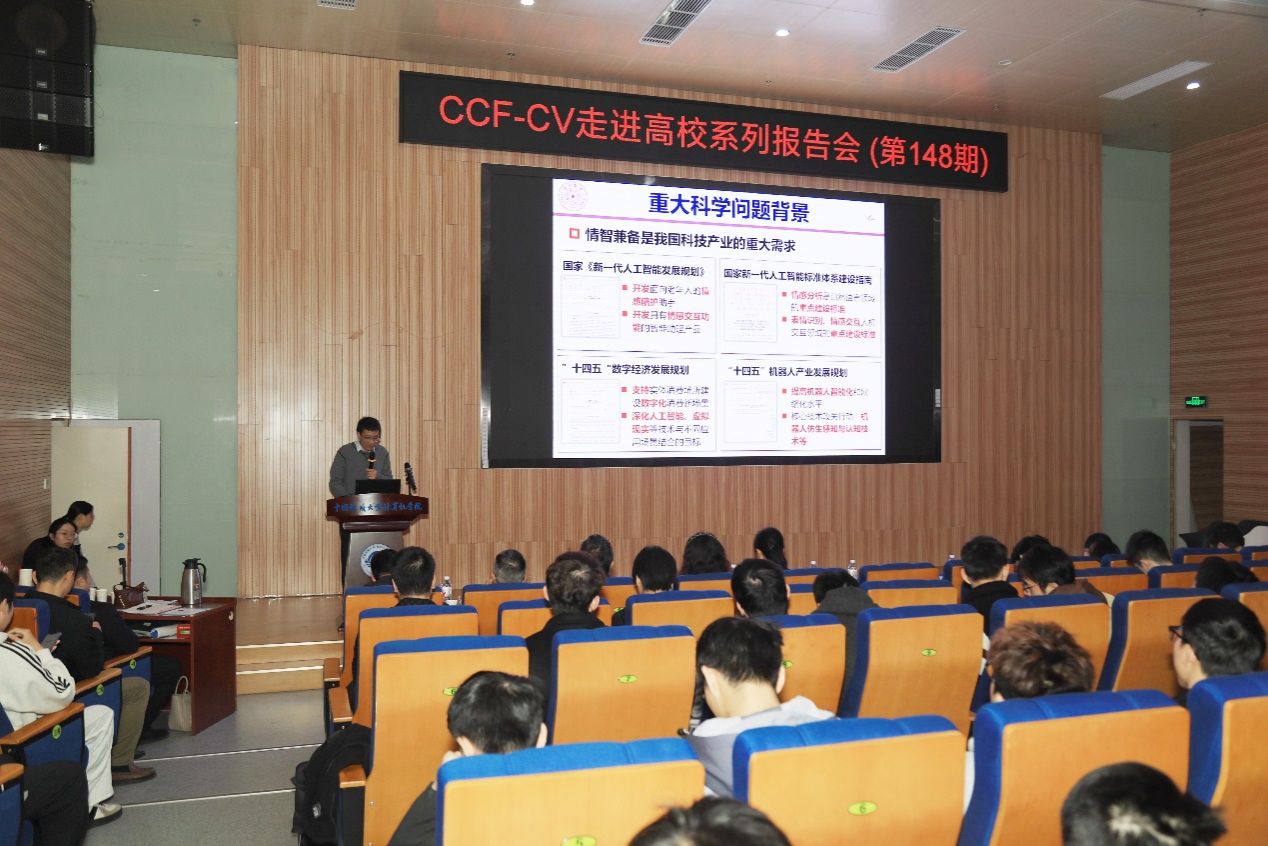 中国科学院计算技术研究所山世光教授在会议中致辞。山世光教授表示计算机视觉是人工智能领域的一个重要议题,大模型的出现在带来机遇的同时也引发新挑战,他期待CCF-CV走进高校系列活动持续发挥桥梁作用,促进学术交流、激发创新思维,推动计算机视觉领域的高质量发展。他衷心祝愿活动圆满成功,并期待此次活动为院庆系列学术活动的高质量开展拉开精彩序幕。