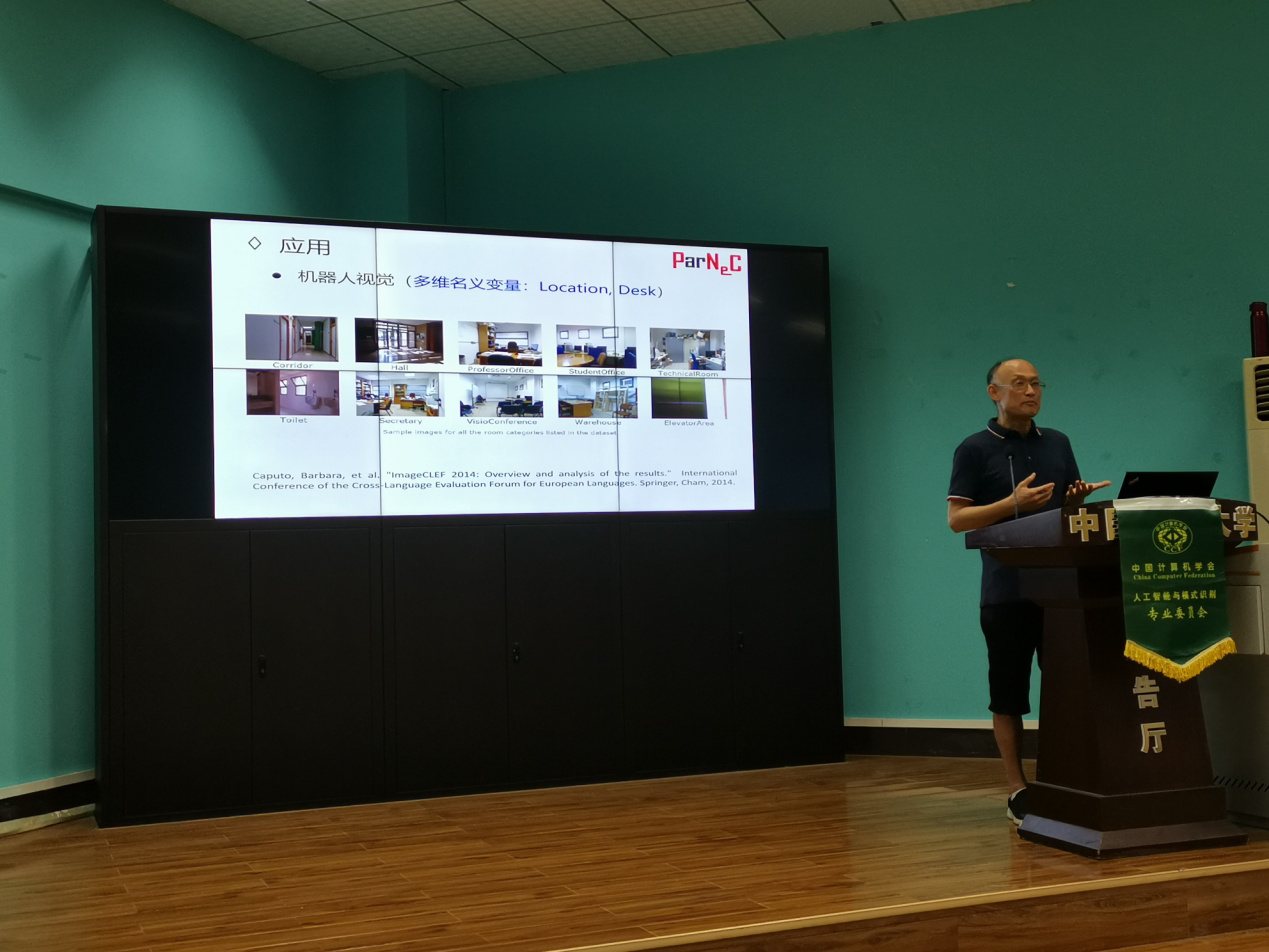 (通讯员:蒋良孝)“CCF-AI走进高校系列报告会”第二十三期于2019年6月16日在beat365在线唯一官网成功举办。该活动由beat365在线唯一官网承办,beat365在线唯一官网蒋良孝教授具体负责组织工作。此次报告会,南京航空航天大学陈松灿教授、东南大学耿新教授、西南大学余国先教授应邀作学术报告。陈松灿教授的报告题目为:多维输出分类学习;耿新教授的报告题目为:面向标记分布学习的标记增强;余国先教授的报告题目为:多聚类发现研究。来自beat365在线唯一官网、武汉大学、华中科技大学、中南财政政法大学、武汉工程大学、江汉大学、湖北第二师范学院、武汉艾维视智能技术有限公司等单位的近130名师生及企业技术人员共同参加了本次系列活动。