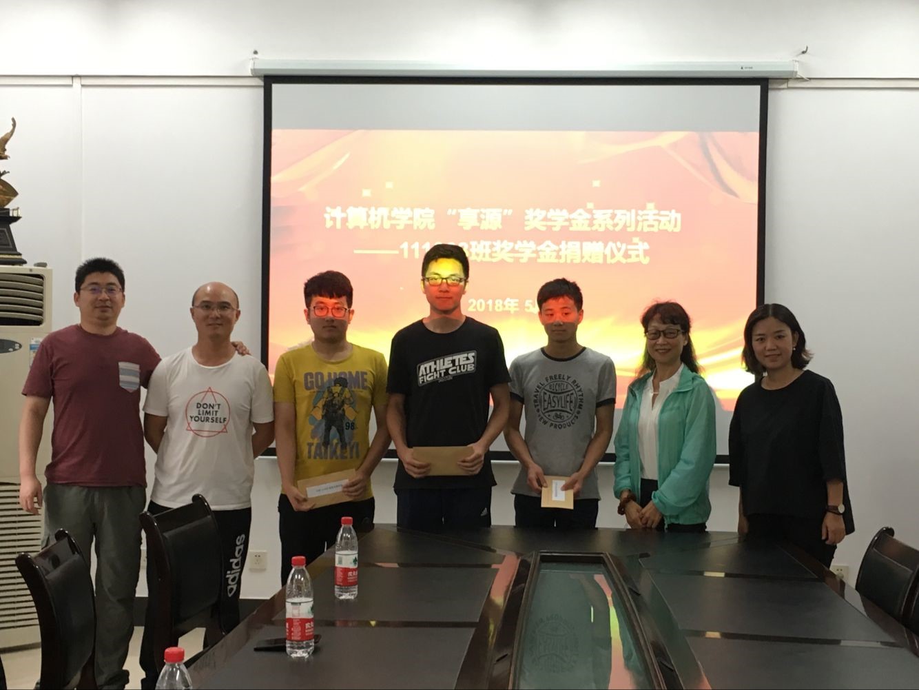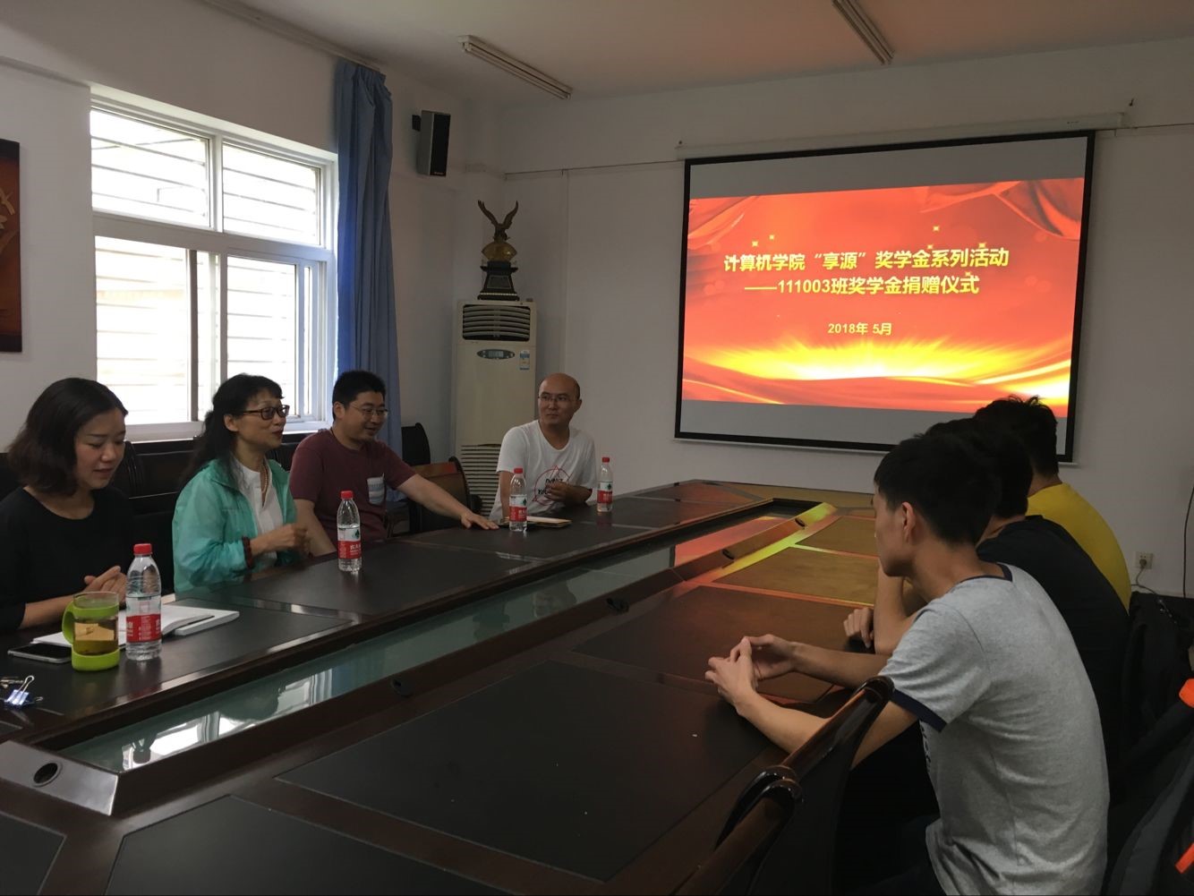 5月23日下午,beat365在线唯一官网“享源”奖学金系列活动之111003班奖学金捐赠仪式在北一楼顺利举行。111003班班主任罗良慧,111003班校友丁文秀(现为湖北省地震局高级工程师),111003班校友龚文引(现为beat365在线唯一官网教授),beat365在线唯一官网党委副书记孙莉出席此次捐赠仪式。