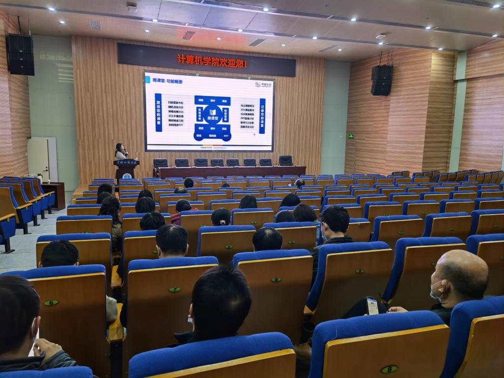 会上,培训人员对“雨课堂”、“超星”两大教学平台的功能和使用方法进行了详细的介绍。老师们展现出了极大的兴趣和热情,纷纷扫描二维码加入微信课堂,参与问答互动、难点反馈、PPT推送、现场答题、统计调查、发送投稿或弹幕到投影屏幕,现场体验两大网络教学平台的课堂互动、授课反馈等功能。