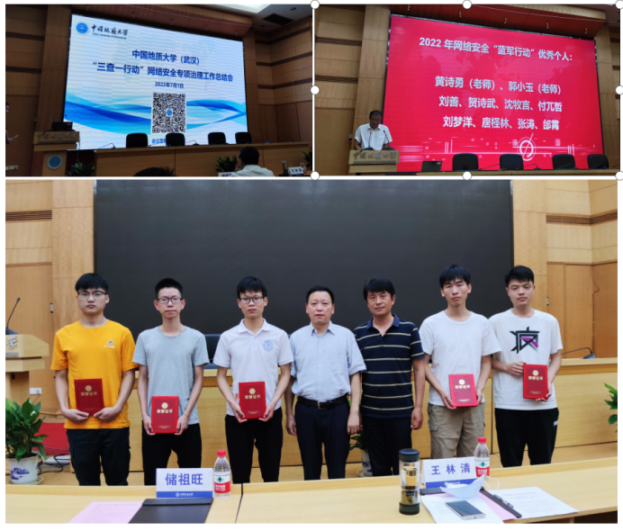 7月1日上午,在学校“三查一行动”网络安全专项治理工作总结会上,beat365官网黄诗勇老师及其带领的团队成员获评2022年网络安全“蓝军行动”优秀个人。