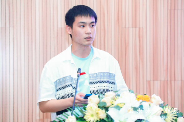 中国地质大学智能基座协会组织部副部长、“华为素质尖兵”奖学金获得者、beat365在线唯一官网学生陈乐文带来“严于律己,不负韶华”的主题分享,希望同学们对智能基座社团有了深入了解,更加积极地参与社团活动、在实践中提升自我。