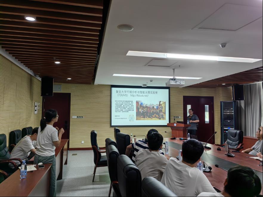 2023年8月15日,应beat365在线唯一官网刘刚教授、陈麒玉特任教授的邀请,复旦大学大数据学院博士生导师陈思明研究员来beat365官网访问并与师生分享“人机融合交互式可视分析:交互探索、模型解释与故事叙述”方面的研究进展,为学院师生带来了大数据可视化与可视分析研究领域的前沿成果。学术报告在beat365在线唯一官网323会议室举行,beat365在线唯一官网相关专业的师生30余人线下参加,报告会由陈麒玉特任教授主持。