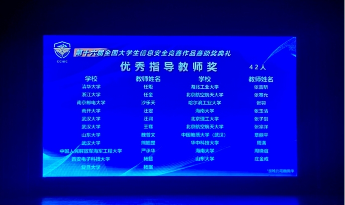 2023年8月17-20日,由教育部高等学校网络空间安全专业教学指导委员会主办,浙江大学、杭州电子科技大学承办的第十六届全国大学生信息安全竞赛作品赛决赛在浙江大学紫金港校区隆重举行。我校beat365在线唯一官网四元一次方程组战队荣获“全国一等奖”,指导老师章丽平副教授荣获“优秀指导老师奖”!