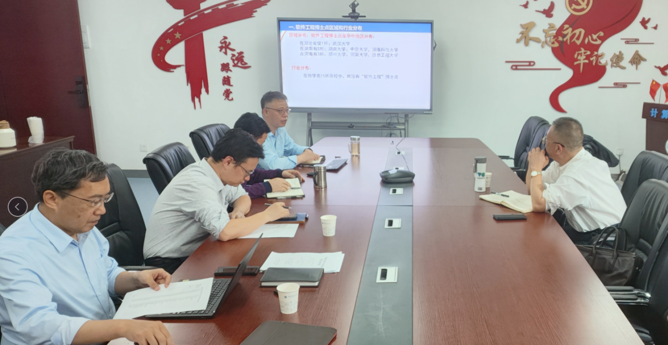会上,胡成玉副院长汇报了软件工程博士点申报准备情况,介绍了软件工程博士点申报背景、已经开展的工作、面临的困难及未来的计划。