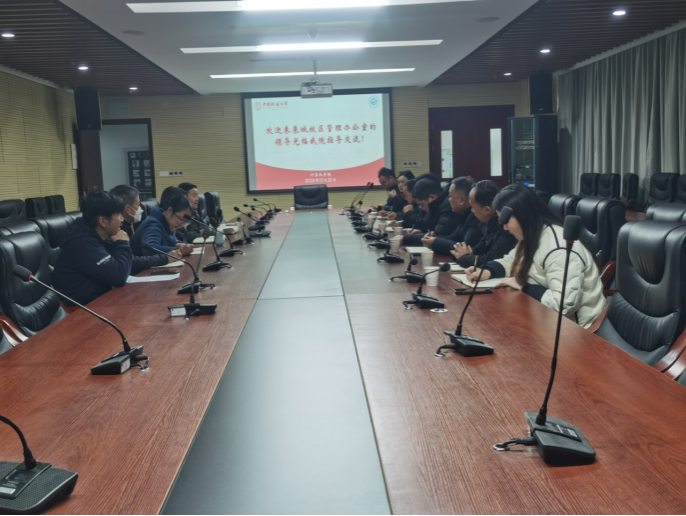 12月22日上午,未来城校区管理办公室(下称校区办)主任王文起,副主任马红祥、罗勋鹤、李雨竹,携相关科室负责人姜力维、杨叶、吴优、谢晓来beat365官网调研交流。beat365官网党委书记李国昌、副书记林小艳、办公室主任石剑峰、工会委员李程俊、纪委委员郭晓兰、研究生秘书郑晓军参加交流。