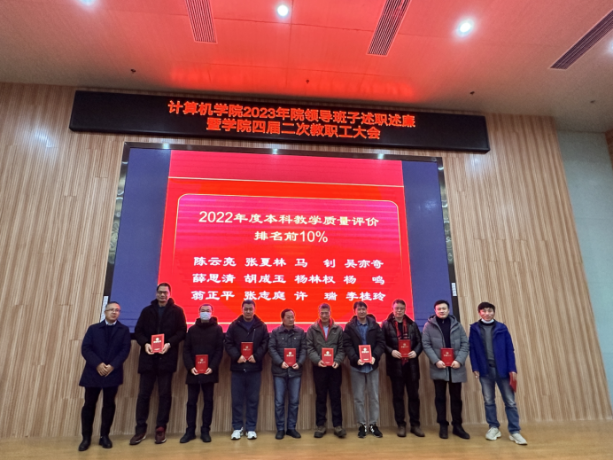 李国昌代表院领导班子作2023年述职报告。他表示,2023年,学院坚持党建引领,师生政治站位进一步提升,党的建设全面加强,全面从严治党深入推进,校友、工会、统战、群团和安全稳定等工作保障有力,学院办学水平进一步提升;学院坚持攻坚克难,“十四五”规划总体进展顺利,学科平台建设成效显著,师资队伍建设稳步推进,高水平人才培养机制不断完善,课程建设取得新成绩,学科竞赛生态不断优化,招生就业取得优异成绩,学院的思政教育成果不断涌现,科研能力大幅提升,学术交流合作与社会服务方式日益多元,内控机制逐步完善,学院实现高质量发展。同时他还指出学院领导将继续提升素质与能力,坚定不移推进学院2024年工作不断取得新的成绩。