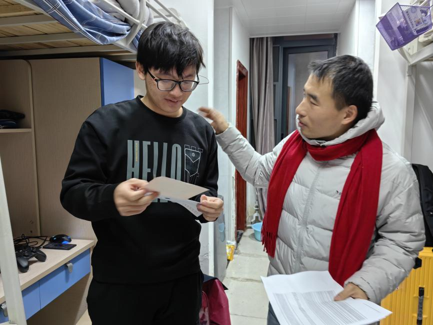 走访过程中,老师们亲切慰问同学们寒假期间的学习、生活情况,关心同学们的返校状况,叮嘱同学们保重身体,注意保暖防寒。与此同时,还勉励同学们尽快从寒假的生活节奏中调整过来,投入到新学期紧张的学习过程中去,合理规划学习计划,劳逸结合,既要培养良好的兴趣爱好,放松身心,也要刻苦努力学习,在新学期取得更好的成绩。