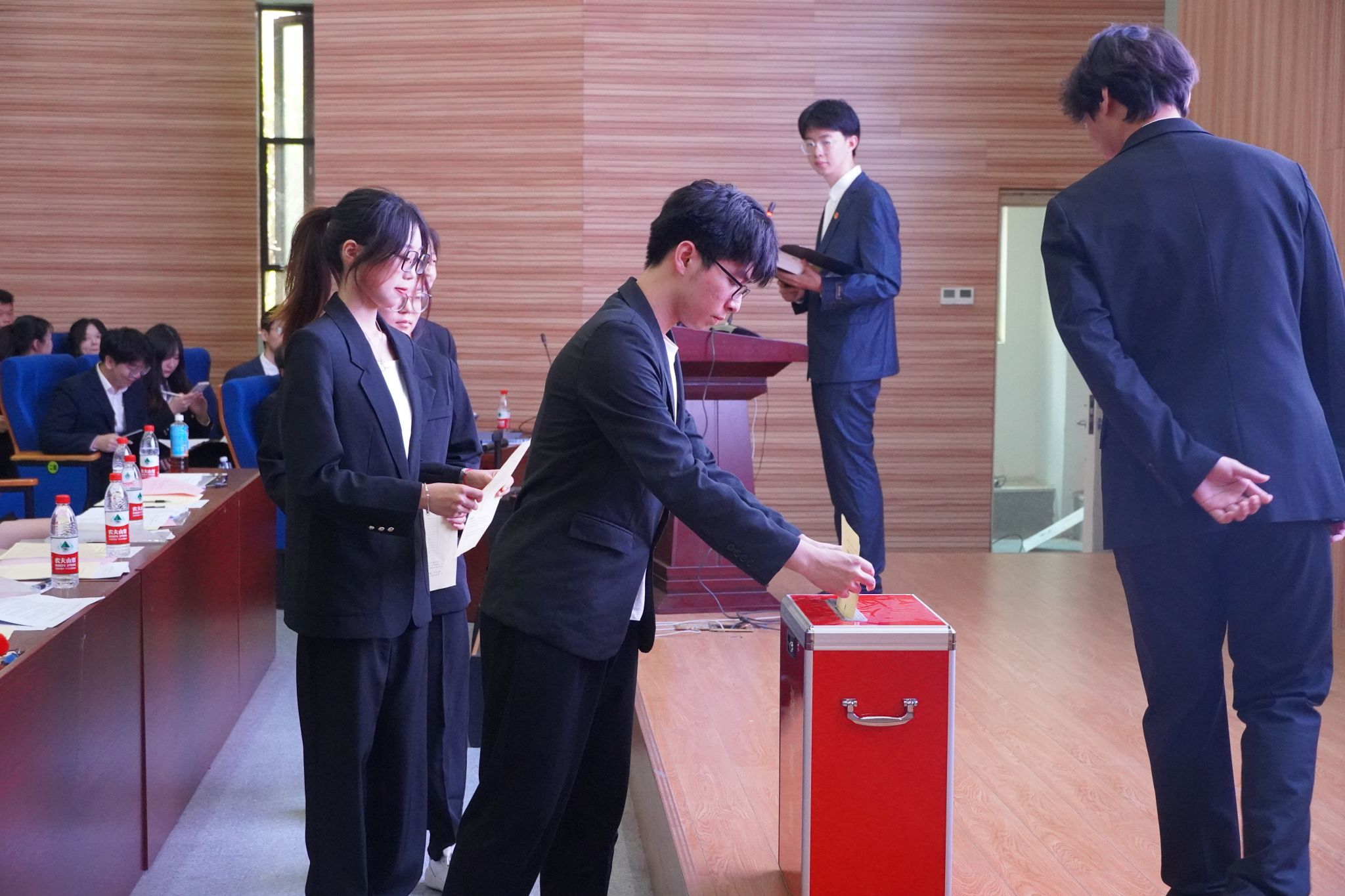 2023届beat365在线唯一官网学生会主席团成员朱瑞东宣读《代表资格审查报告》和《候选人资格审查报告》。