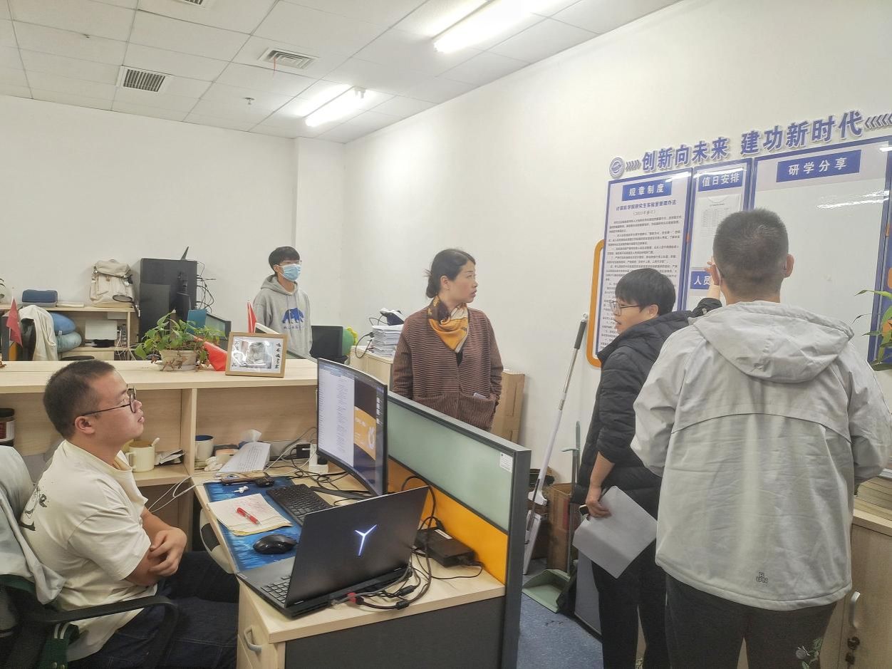 走访领导及老师指出,实验室是研究生科研学习的重要场所,安全管理责任重于泰山。因此,要坚持“谁使用、谁负责,谁主管、谁负责”的原则,确保实验室的安全运行。实验室全体同学应提高安全意识,及时锁门,注意关窗断电。同时,要保持良好的卫生条件,严禁在实验室用餐以及存放零食,打造干净整洁的研学环境,供师生更好的开展科学研究。走访发现实验室总体卫生状况良好,部分实验室的文化墙建设以及实验室布置视觉效果突出,值得学习。