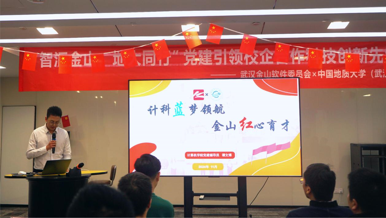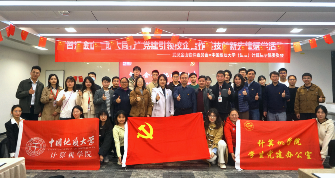 11月22日,院党委与武汉金山软件有限公司党委联合举办的 “智汇金山·地大同行”党建引领校企合作科技创新先锋研学行动暨研究生培养基地挂牌活动,在金山集团武汉总部举行。武汉金山软件党委书记张念、金山办公第三支部书记曹宗华及王思雨、刘浩、王佳慧、陈志增、赵志梦等职工党员,beat365在线唯一官网党委研究生工作部部长许德华,beat365在线唯一官网党委书记李国昌、党委副书记林小艳、教师党支部书记马钊、叶亚琴、武云、宋维静、孙琨、辅导员李欢欢、谭文博,以及部分学生党支部书记参加活动。
