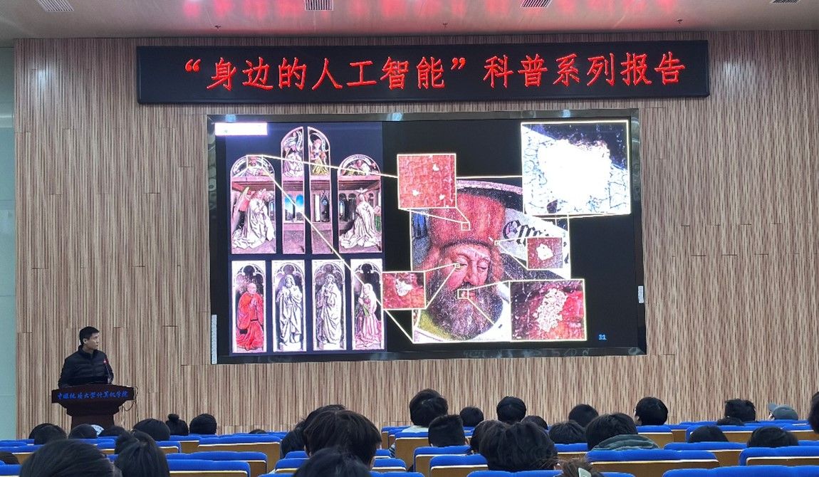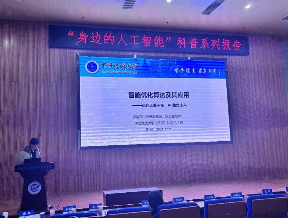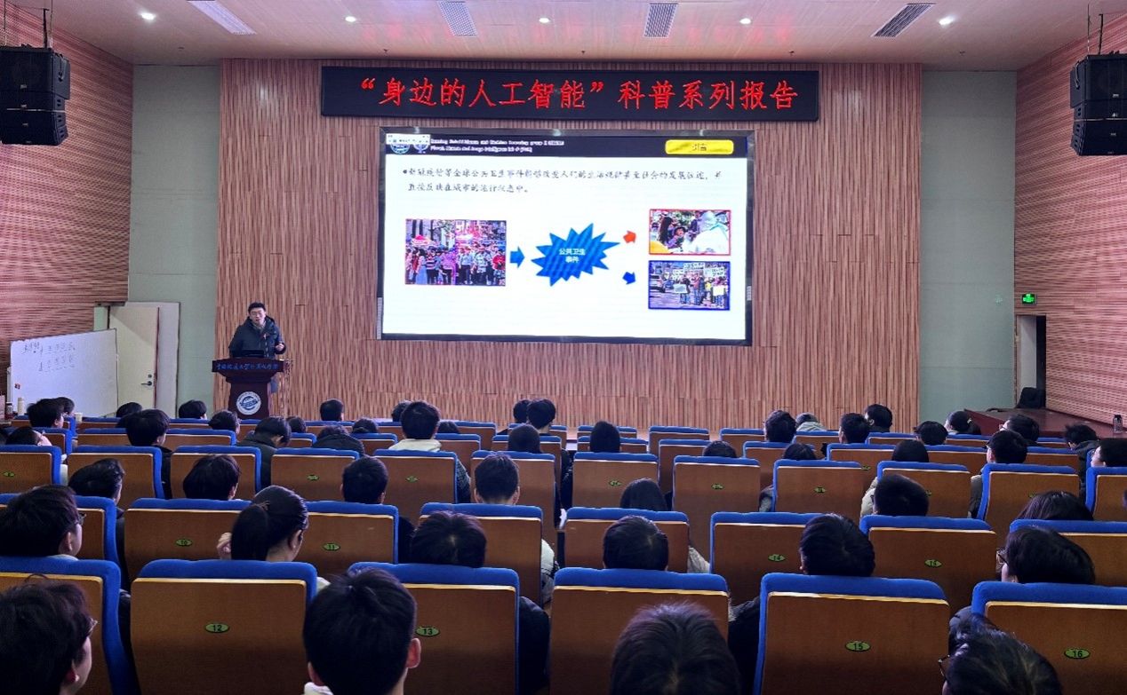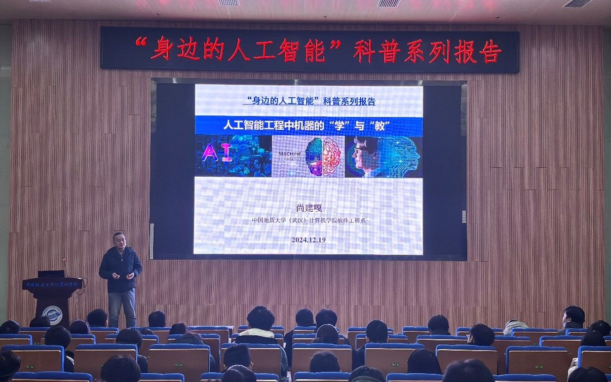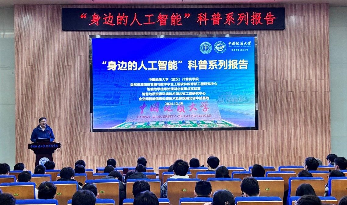 习近平总书记指出:“科技创新、科学普及是实现创新发展的两翼,要把科学普及放在与科技创新同等重要的位置”。为促进beat365官网科学技术普及工作,弘扬科学精神,激发创新活力,12月19日下午,学院举办的“身边的人工智能”科普系列报告活动在计科楼126报告厅进行,邀请了武汉大学测绘遥感与信息工程国家重点实验室武辰教授、beat365官网数据科学与大数据系李程俊副教授、计算机应用系陈麒玉教授、智能科学与技术系黄绍广教授、软件工程系尚建嘎教授、信息安全系朱静副教授、计算机科学与技术系甄慧翔副教授作专题科普报告,学院副院长刘刚主持活动。报告会得到了自然资源信息管理与数字孪生工程软件教育部工程研究中心、智能地学信息处理湖北省重点实验室、智慧地质资源环境技术湖北省工程研究中心、全空间智能信息处理技术及系统湖北省中试基地等科研平台的支持,也是beat365官网建设的武汉市科普基地的活动之一。200余名师生参加了本次活动。