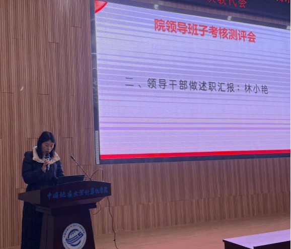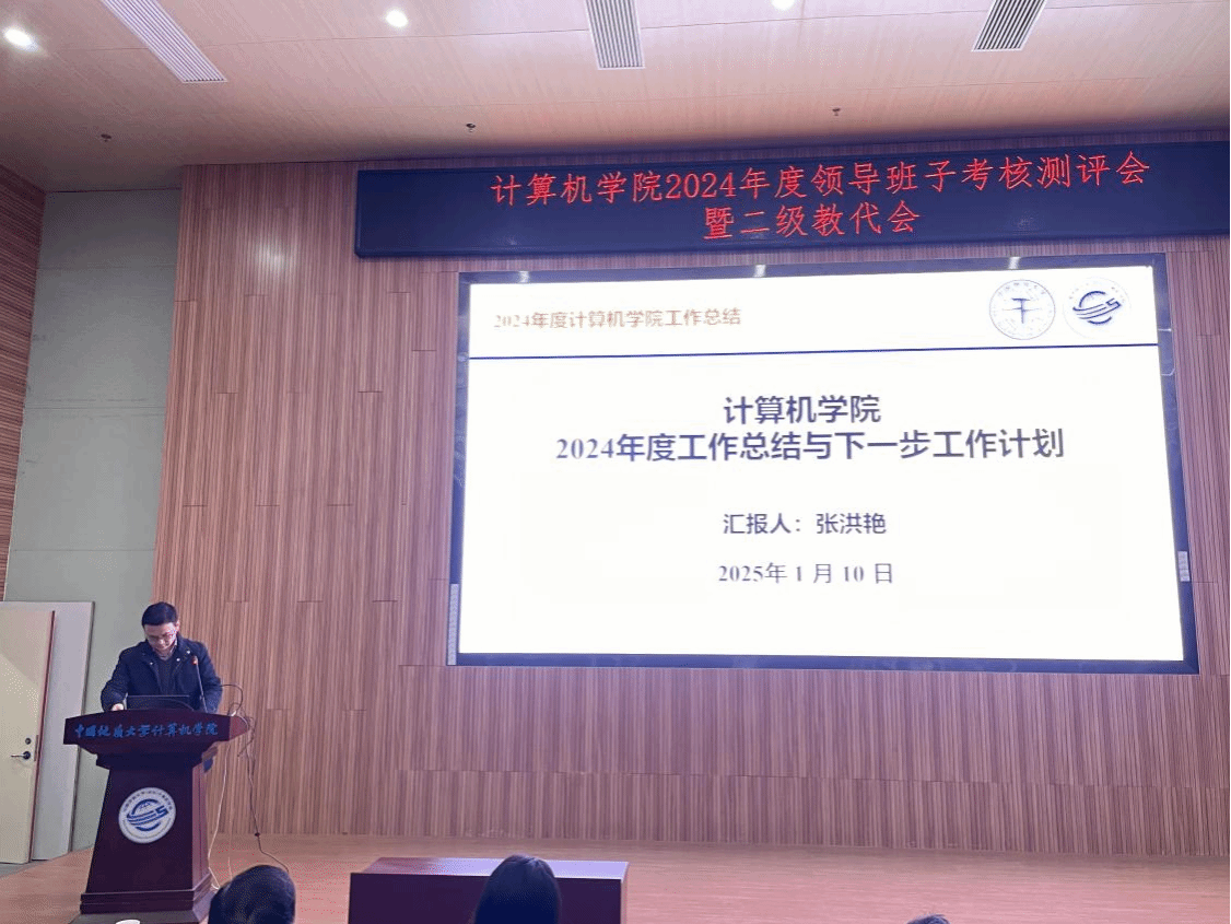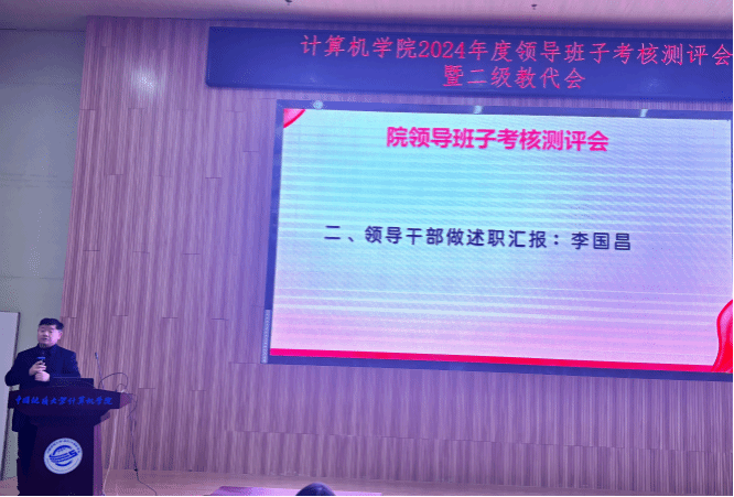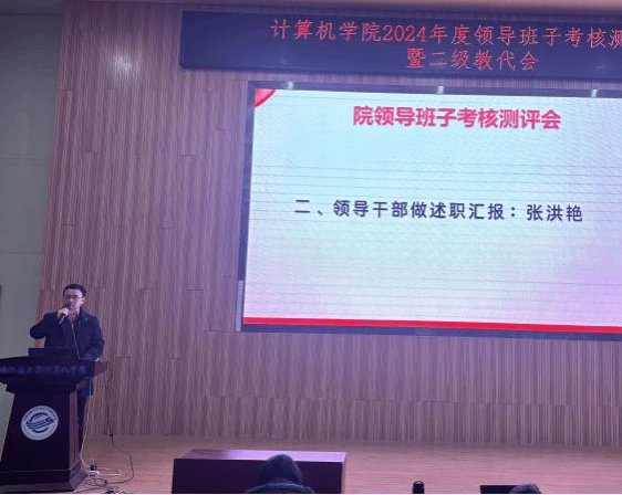 张洪艳院长代表院领导班子述职述廉。2024年,beat365在线唯一官网领导班子旗帜鲜明讲政治,不折不扣不抓落实,以“提质增效年”为主题,团结协作、务实创新、担当作为,继续带领全院师生抓发展、保平安、守规矩,推动学院各项事业取得明显成效。未来将进一步落实学院“十四五”事业发展各项任务,协同推进和落实一流计算机学科建设计划,完善体制机制,抢抓人工智能和计算机基础学科发展机遇,坚持问题导向和目标导向,全面贯彻落实学校《关于进一步深化改革 扎实推进教育强国建设地大实践的行动方案》各项任务。