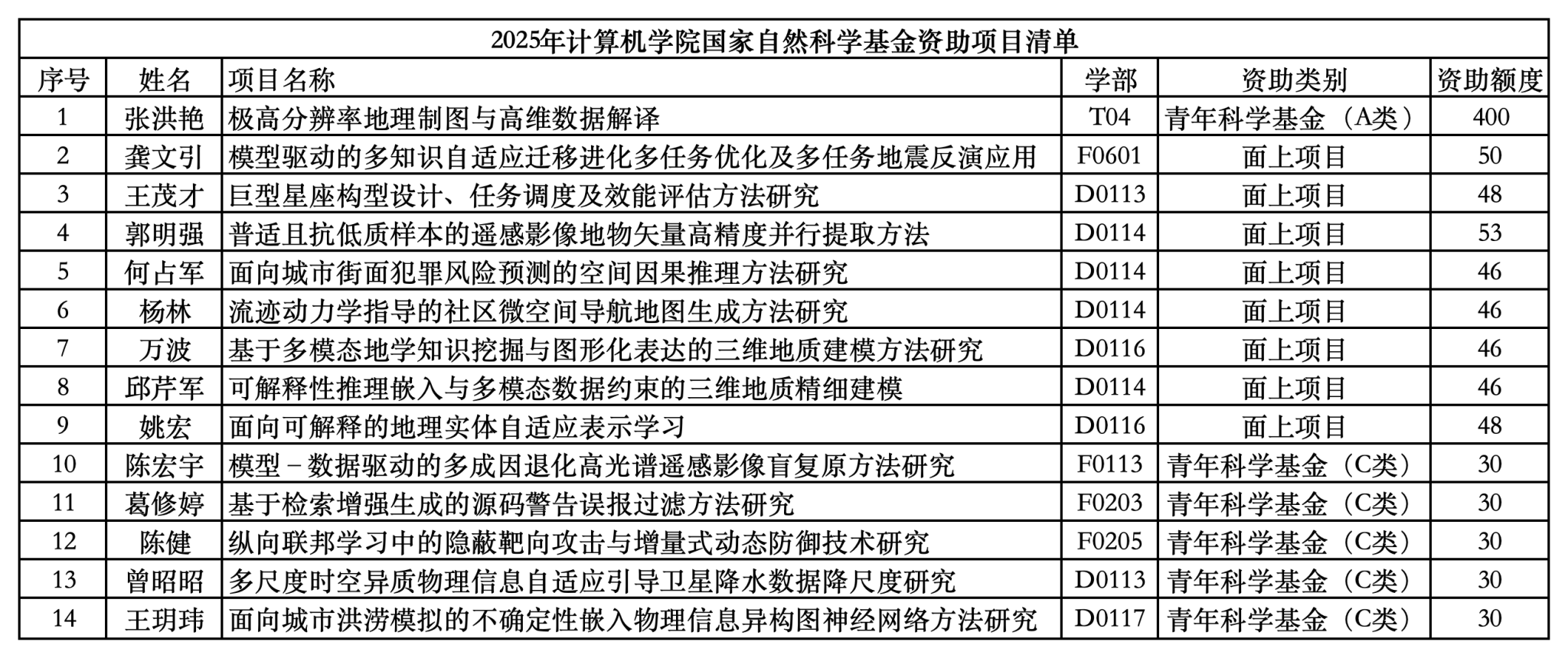 8月27日,国家自然科学基金2025年集中接收期项目评审结果正式公布,beat365官网国家自然科学基金项目取得新突破,共获批14项资助项目,其中青年科学基金项目(A类)1项、面上项目8项和青年科学基金项目(C类)5项,立项总数和资助额度均创历史新高,分别较去年增长40%和61%。