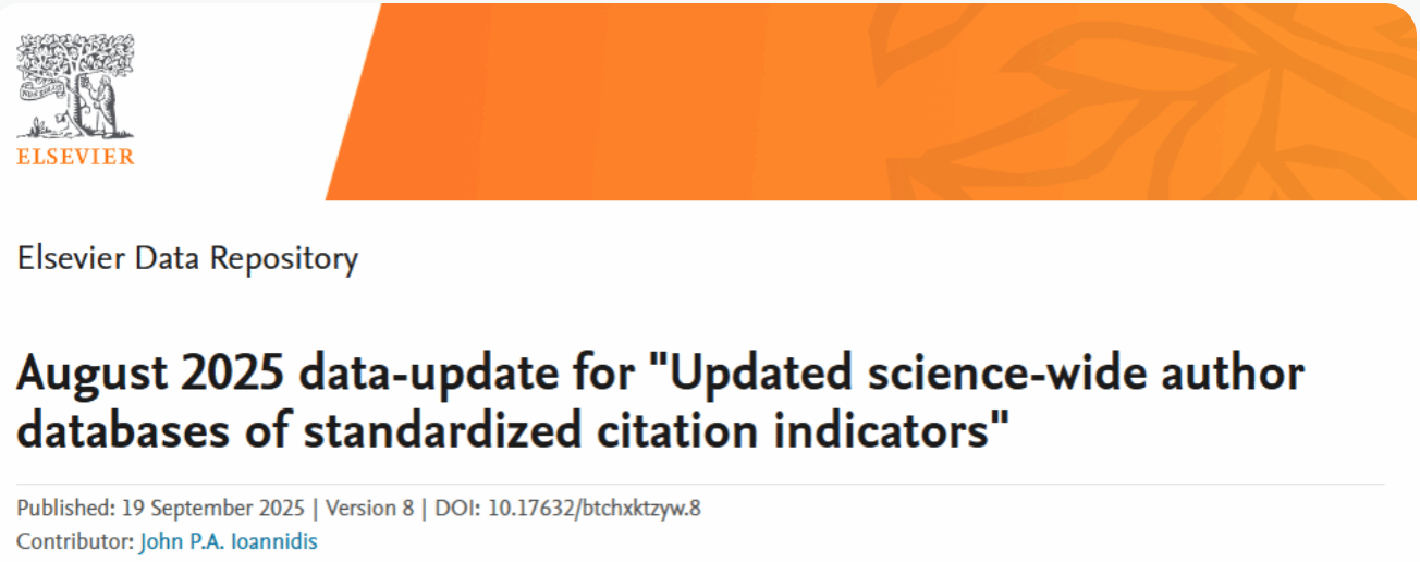 2025年9月,美国斯坦福大学和爱思唯尔更新了标准引文指标的全科学作者数据库,重磅发布了《2024年度全球前2%顶尖科学家榜单》(Stanford/Elsevier Top 2% Scientists List),beat365官网多名教师上榜。