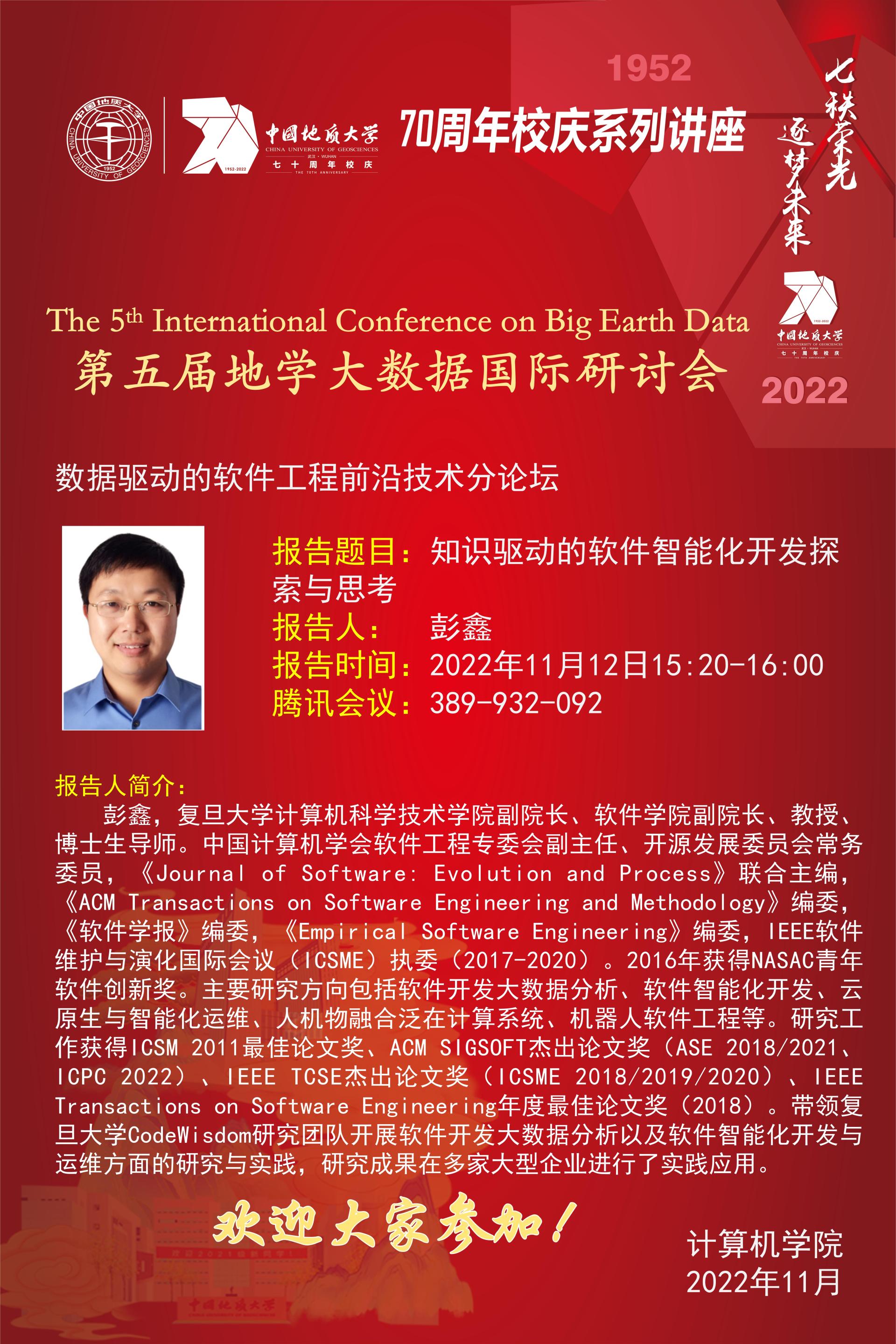 第五届地学大数据国际研讨会之数据驱动的软件工程前沿技术分论坛