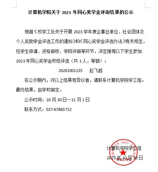 beat365在线唯一官网关于2023年同心奖学金评审结果的公示