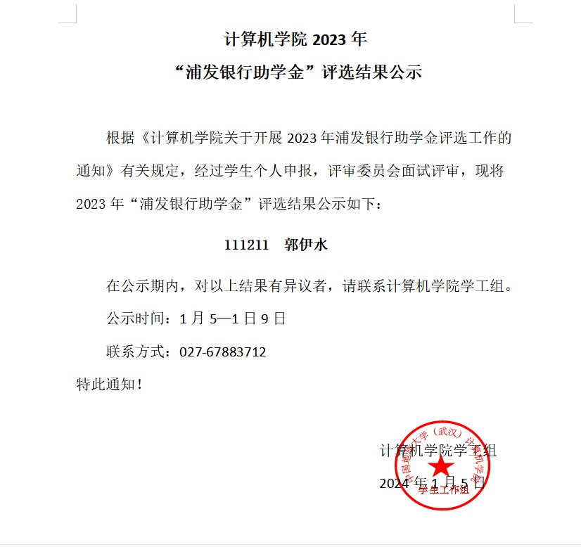 beat365在线唯一官网2023年“浦发银行助学金”评选结果公示