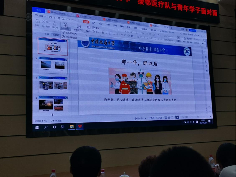 (通讯员:192192团支部、193192团支部)岱家山下夏伊始,正值人间五月天。2020年初,一场突如其来的新冠疫情席卷武汉,各省援鄂医疗队逆行出征,驰援武汉,未来城校区部分学生宿舍成为了外地援鄂医疗队驻地。如今,武汉重启,未来城校区早已春暖花开。陕西医疗队白衣战士们重返未来城校区,为地大学子讲述援鄂医疗队投身抗疫一线的动人故事,激励广大学子弘扬抗疫精神,献礼建党百年。