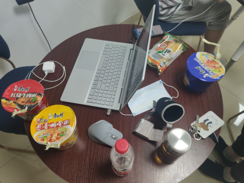 比赛第二天深夜,准备通宵前的能量补充,这是我们一位队员当天的第一顿饭。