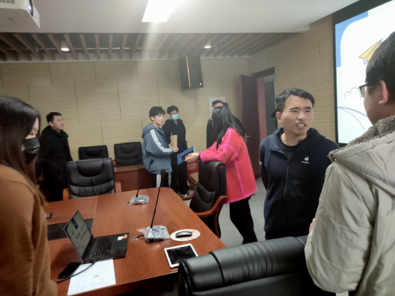 最后,由傅苑和王太茂为大家发放学院为每位考研学子准备的“大礼包”,里面包含免费的鸡腿券和祝福卡片。