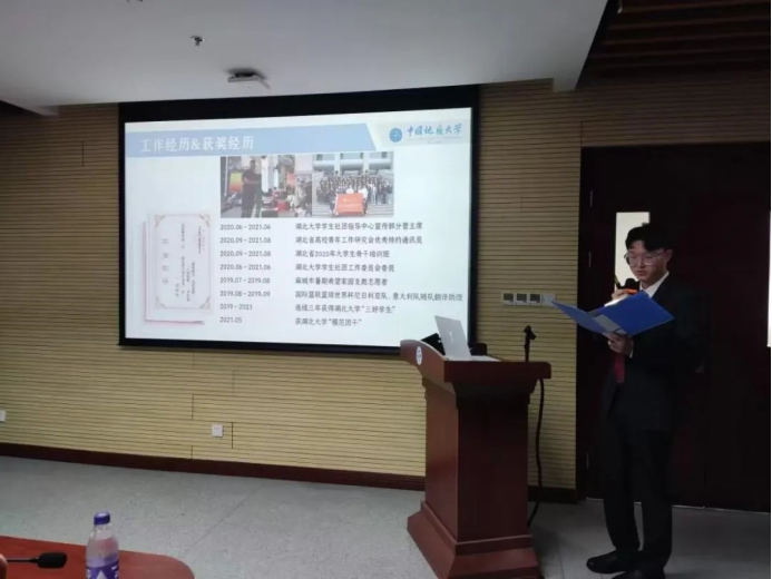 9月28日下午,beat365在线唯一官网第二届研究生代表大会在323会议室顺利召开。学院党委书记李国昌,党委副书记、纪委书记傅苑,团委书记李欢欢出席本次大会。学院2015届学生会副主席、2018届研究生会主席金敏,2017届学生会副主席明飞,2020届研究生会主席王浩屹、副主席刘文凤,2019届学生会主席李延炽,2020级专硕1班班长雷俊烨担任评委,beat365在线唯一官网研究生代表大会筹备工作领导小组成员张骞主持会议。本次研代会总结了beat365官网2021-2022年研究生会工作经验,全面分析beat365官网学生工作所面临的新形势,明确接下来的主要工作目标和任务,选举产生研究生团委副书记、新一届研究生会主席团。