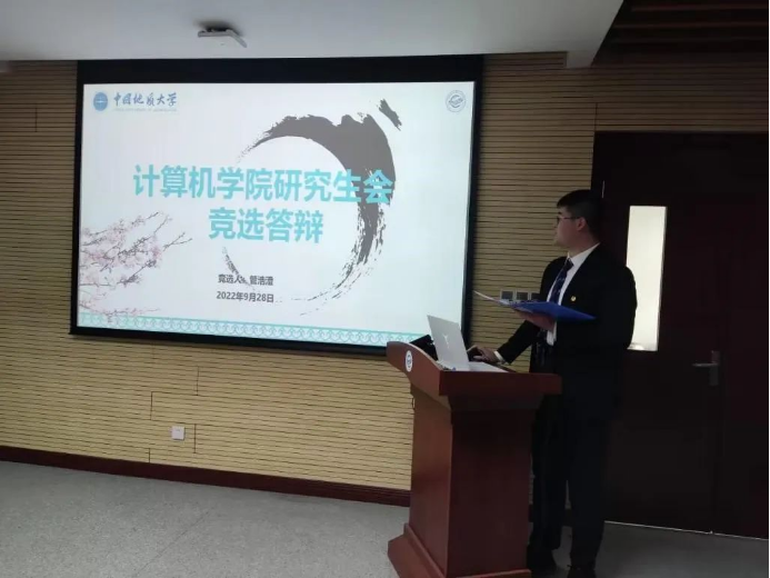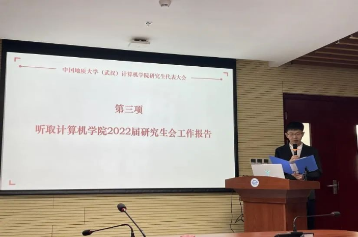 大会第三项,学院研究生会主席团成员崔祥森做2022届研究生会工作报告,总结回顾了过去一年研究生会在思想引领、科创研学、素质拓展等方面展开的工作和取得的成效。