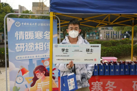 院党委副书记傅苑也来到现场和伙伴们一起给大家发礼物。她悉心询问了同学们的学习和生活近况,鼓励同学们专心备战考研,决战冲刺,同时也嘱咐大家一定要做好防护,注意保暖,多喝水多休息,劳逸结合。她还表示学院始终是学生最坚强的后盾,会尽全力为大家排忧解难,预祝大家金榜题名,一战成“硕”!