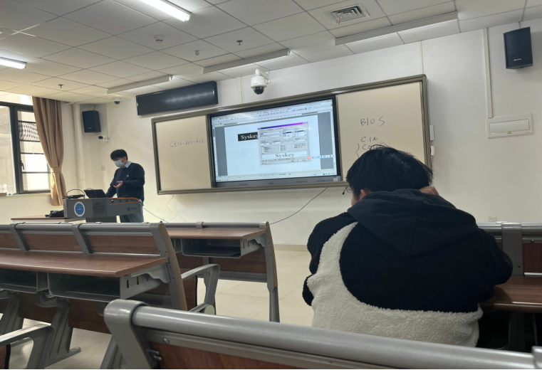 老师们在课堂上也给我们展示了惊艳的操作:马钊老师演示了如何在图片中影藏数据,程池老师给我们讲解了密文解密该如何分析,黄诗勇老师的汇编课更是让我们领会到了逆向工程的神奇。