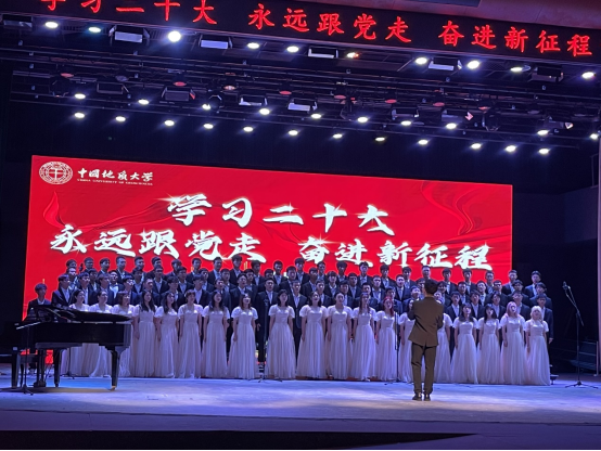 beat365在线唯一官网“学习二十大·永远跟党走·奋进新征程”主题歌咏活动在南望山校区西区弘毅堂举办。来自20个单位的代表队参加了此次活动,beat365在线唯一官网代表队演唱的《新的天地》获得“优秀表演奖”。
