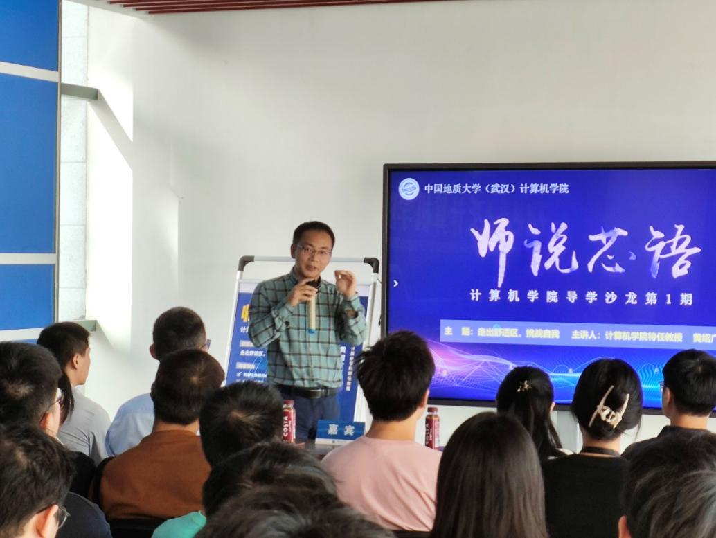 10月17日下午,beat365在线唯一官网导学沙龙“师说芯语”第1期在学院一楼大厅开讲。第一期开讲嘉宾为beat365在线唯一官网特任教授黄绍广,题目为“走出舒适区,挑战自我”。