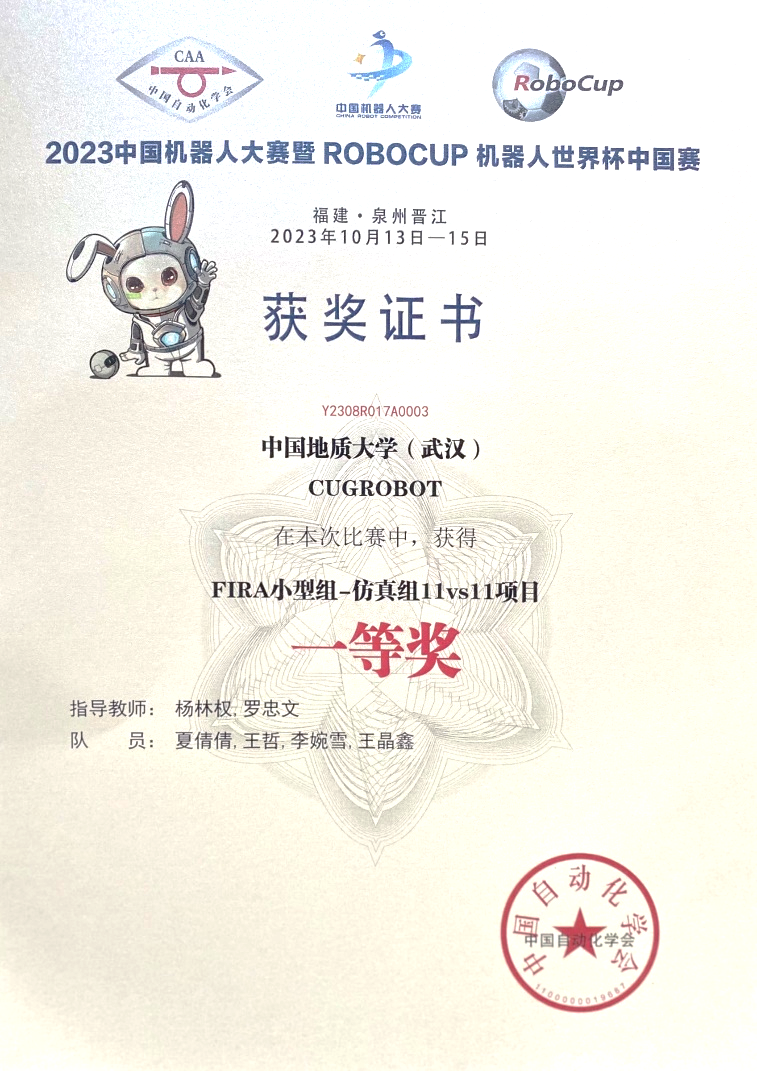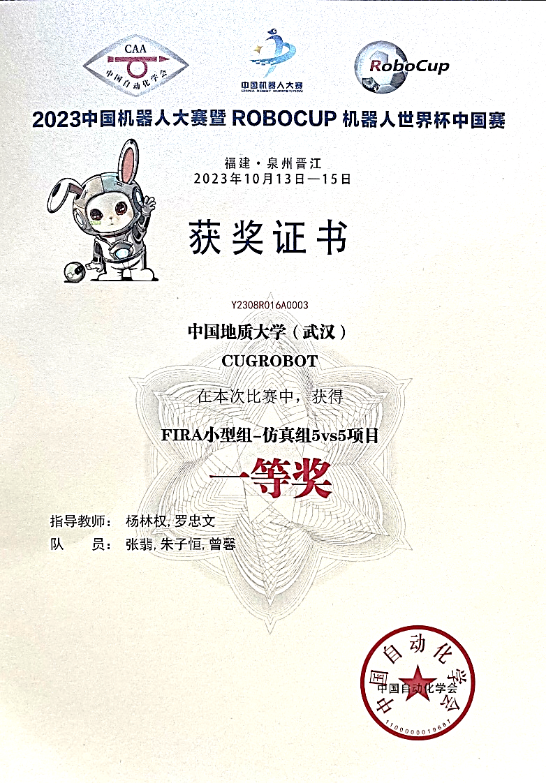 10月13至15日,2023年“中国机器人大赛暨RoboCup机器人世界杯中国赛”在福建晋江国际会展中心落下帷幕。我校beat365在线唯一官网杨林权副教授和罗忠文教授指导的学生团队参赛。经过激烈的比赛,最终学生团队勇夺FIRA仿真组5vs5项目第3名,国赛一等奖和仿真组11vs11项目的第3名,国赛一等奖。