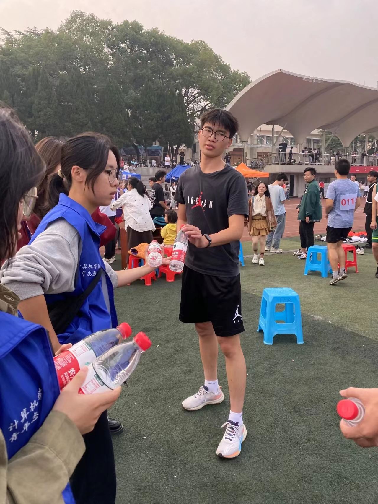 其实运动会除了运动员们对于更高更快更强的追逐,还有着许多动人的瞬间,或温情,或热烈,而你我皆是这阔大舞台上的一员。赛场上,记分员、志愿者、裁判员们忙碌奔走着。文体部的干事们维持着现场秩序,全媒体的同志们架着相机,捕捉下一个个生动的镜头。一场盛会从来不只一个焦点,是计科人地大人团结携手才营造了这样磅礴的赛事。
