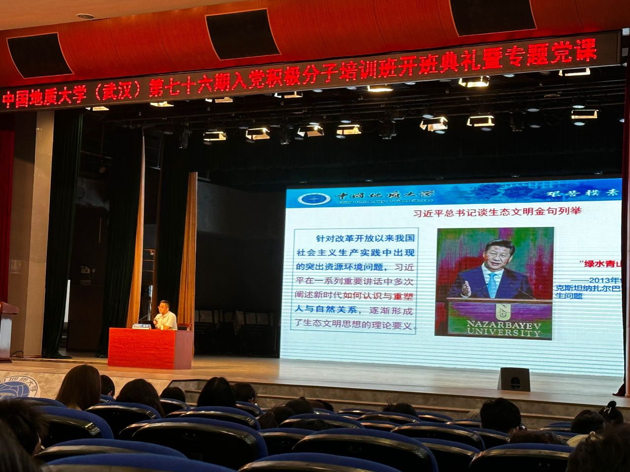 2024年4月25号下午,beat365在线唯一官网第76期积极分子培训班开班典礼暨专题党课顺利召开。本次党课在南望山和未来城校区同时开展,beat365在线唯一官网132名学员参加本次开班典礼暨“习近平生态文明思想的形成逻辑、理论蕴含与实践要求”专题党课。本次党课由beat365在线唯一官网马克思主义学院副院长、博士生导师,陈军教授主讲。