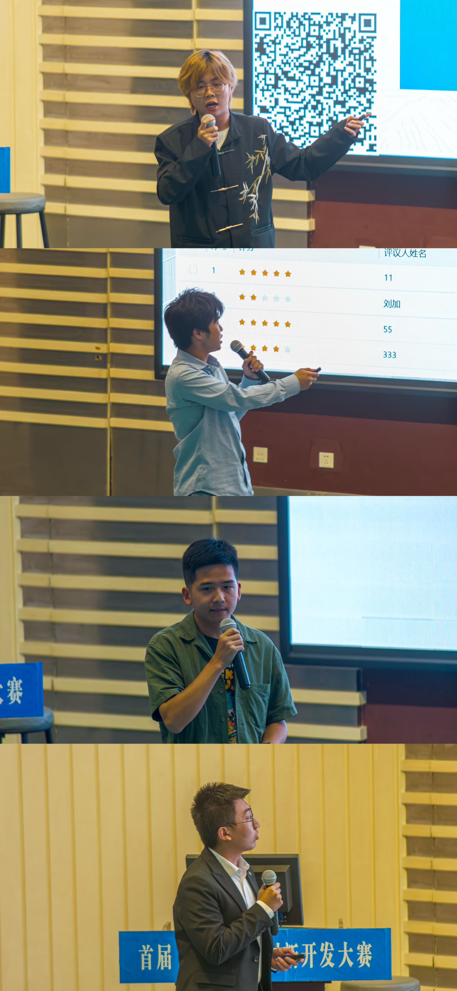 比赛正式开始,11支决赛队伍依次上台答辩。小队成员们精神饱满、细致生动地讲述了小队的开发进程与最终成果,充分展现了地大学子热情洋溢、精益求精的精神风貌。