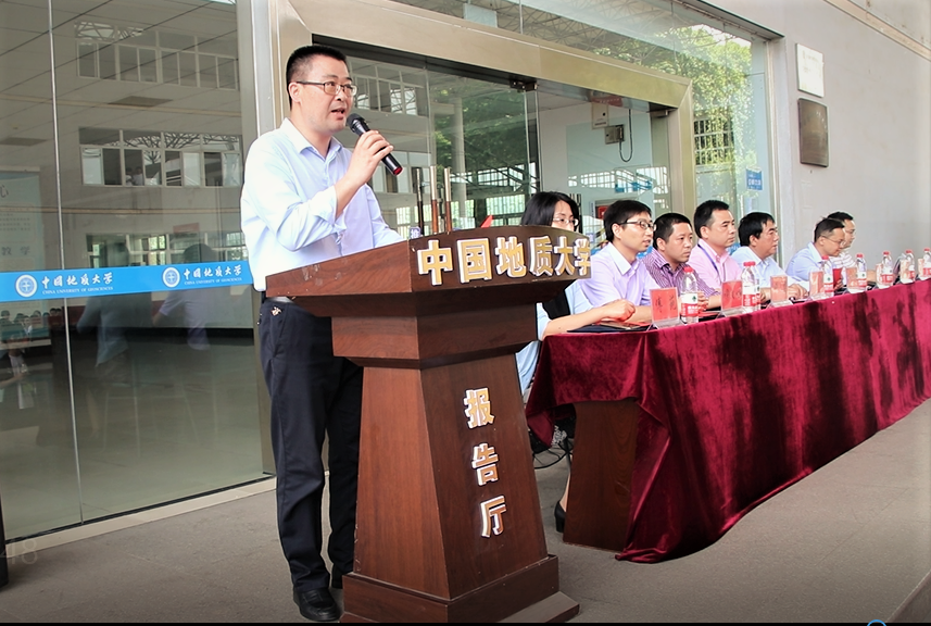 赖旭龙致辞,他谈到,ACM邀请赛很好的契合了计算机领域的发展需求,为学生提供了锻炼自我、提升编程能力的平台。他希望同学们立足专业实际、练就过硬本领,用编程之美书写中国梦的壮丽篇章!随后,黄双龙讲话,他介绍了思特奇公司的人才发展战略,期待与中国地质大学展开更加深入的合作。最后,邬海峰宣布比赛正式开始。