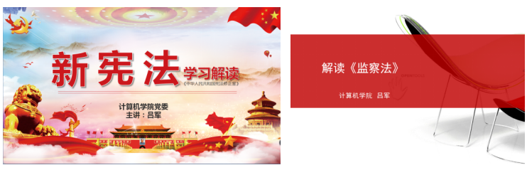 随后,吕军书记又给大家上了一堂《宪法修订案》和《监察法》解读的专题党课。同时布置了下一阶段学院的党建主要工作。