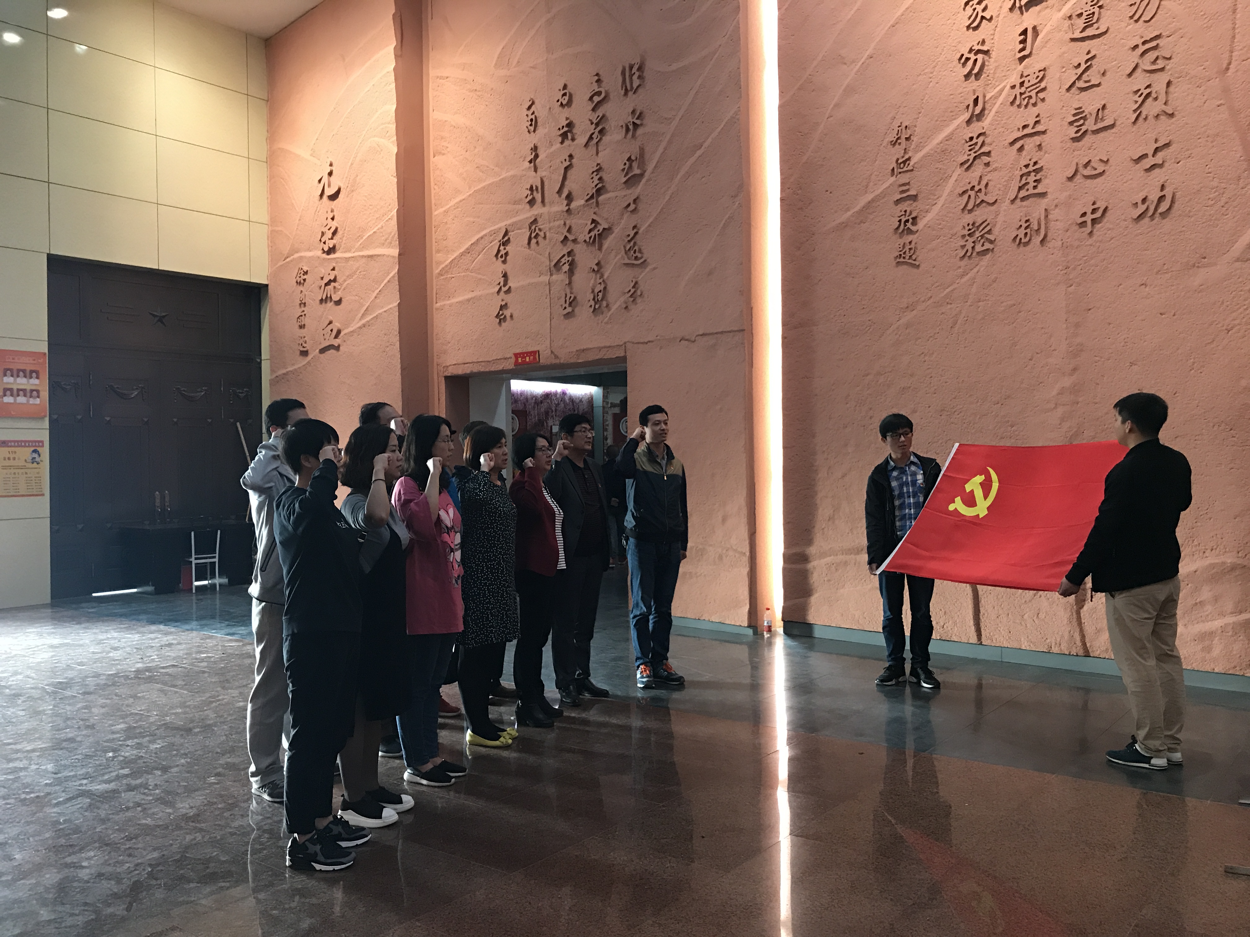 为感受革命先烈的革命斗争精神,激发全体党员的爱国主义情怀,beat365在线唯一官网院直支部全体党员于10月28、29日,在建军90周年之际赴孝感市大悟县新四军第五师纪念馆及鄂豫边区烈士陵园等爱国主义教育基地开展了一系列的“革命传统教育活动”,接受革命先辈们的革命传统的教育。